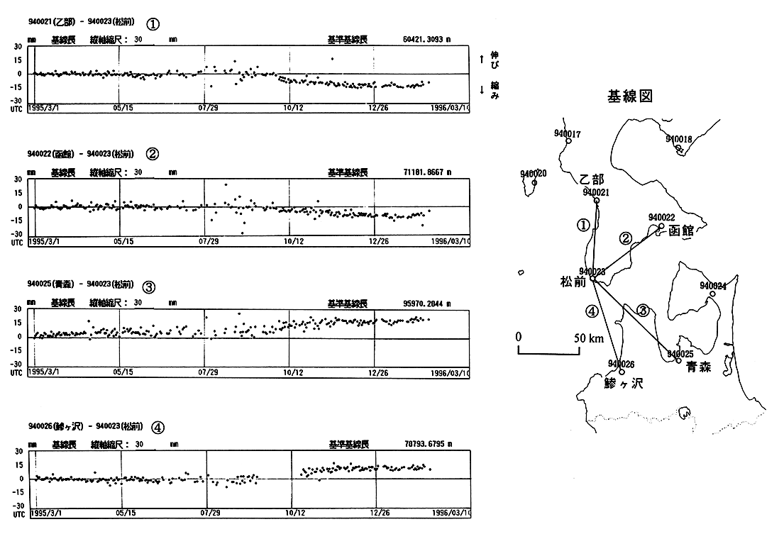 GPS連続観測基線図・基線長変化(松前周辺)