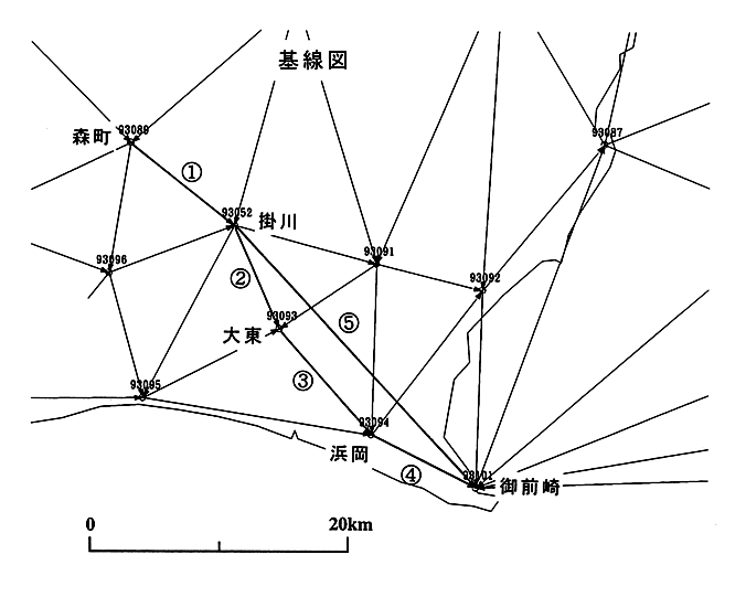 GPS連続観測基線図(掛川・御前崎周辺)