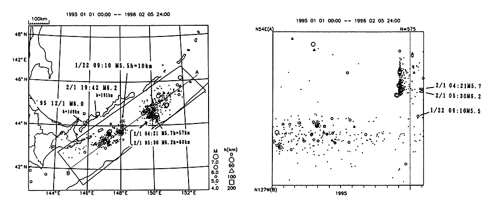 北海道東方沖から択捉島にかけての地震活動(1995年1月〜1996年)