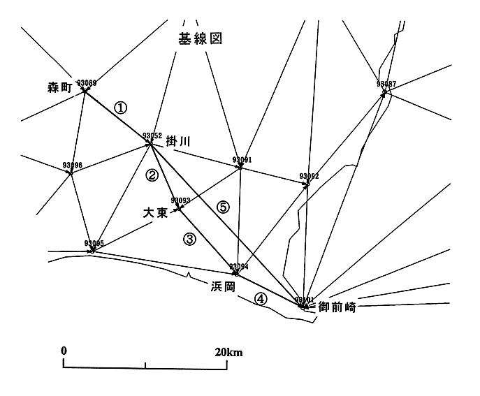 掛川・御前崎周辺の基線には、特筆すべき変化は見られない。