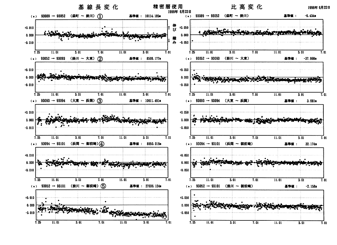 GPS連続観測(掛川・御前崎周辺)基線長・比高変化