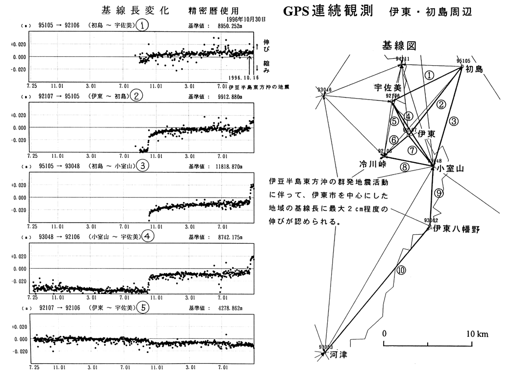 GPS連続観測(伊東・初島周辺)基線長変化