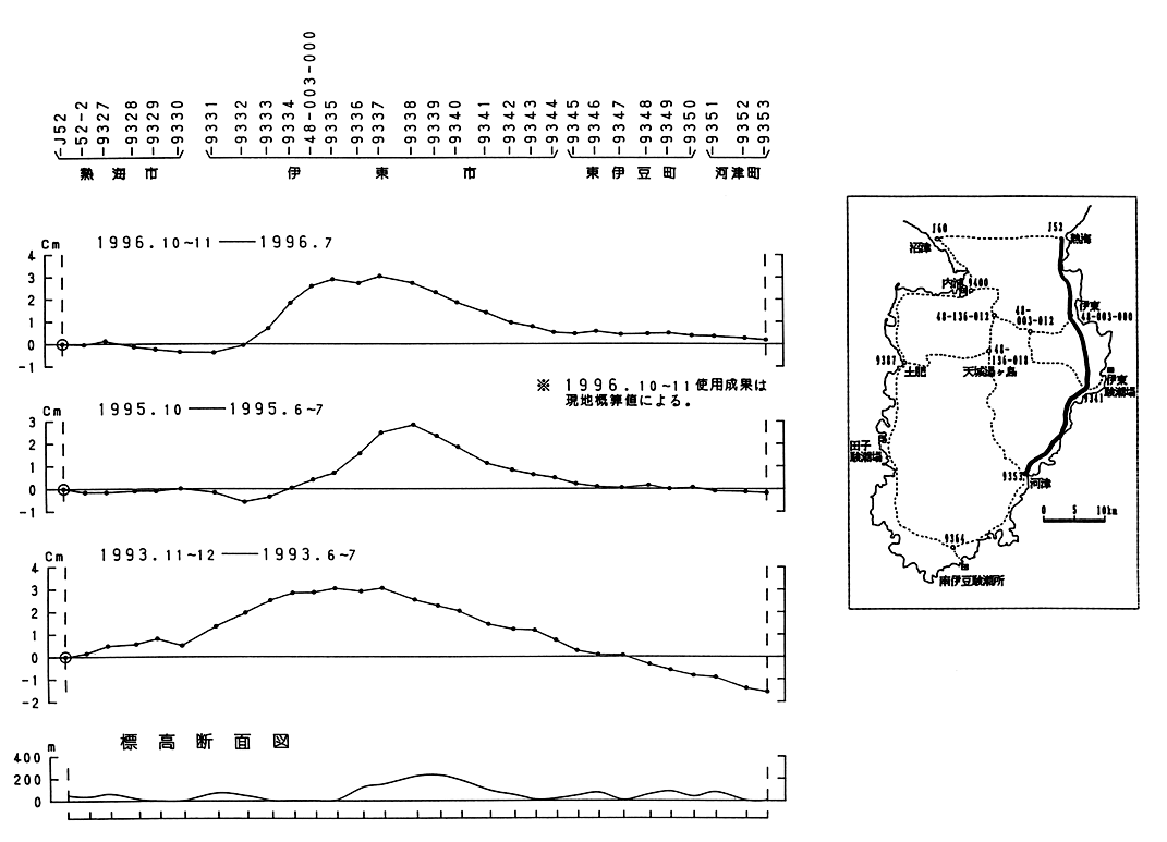 熱海〜伊東〜河津間の上下変動