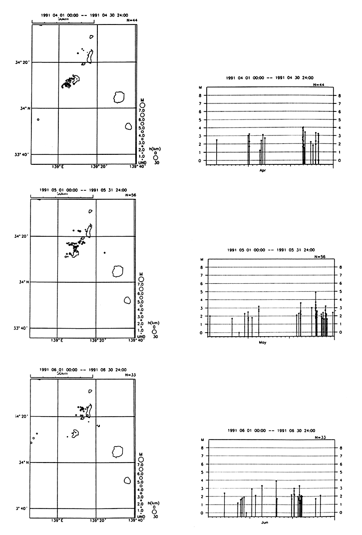 新島・神津島近海の地震の活動 (1991/04/1−1991/06/30)