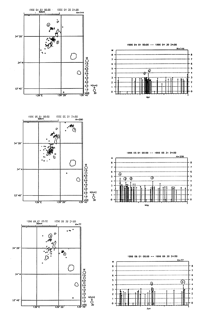 新島・神津島近海の地震の活動 (1996/04/1−1996/06/30)