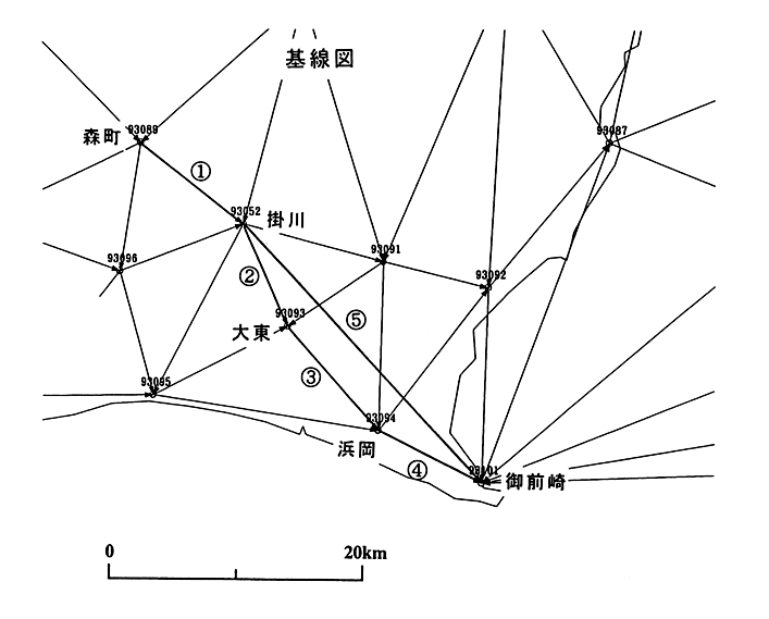 GPS連続観測(掛川・御前崎周辺)基線図