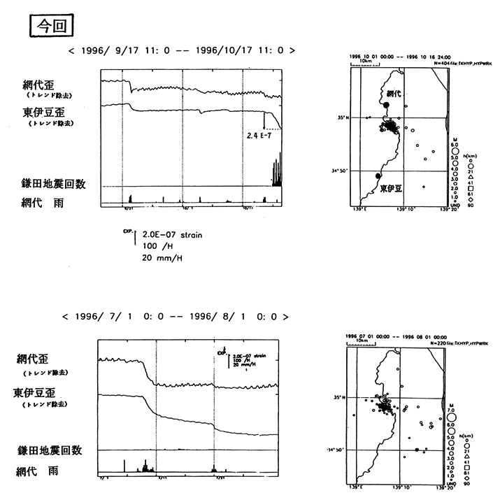 東伊豆及び網代の体積ひずみ変化と伊豆半島東方沖の地震活動(1)