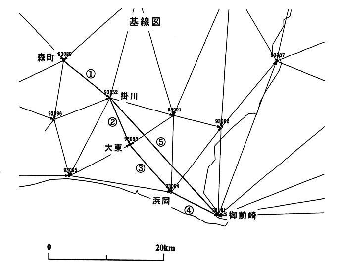 GPS連続観測(掛川・御前崎付近)基線図