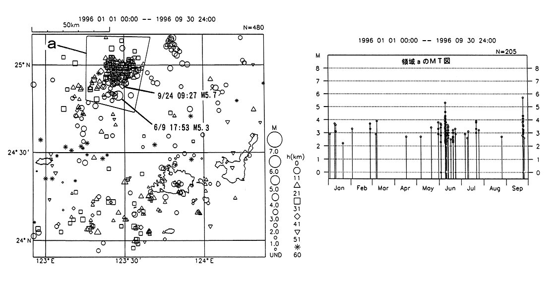 西表島近海の地震活動(1996/1/1−1996/9/30)