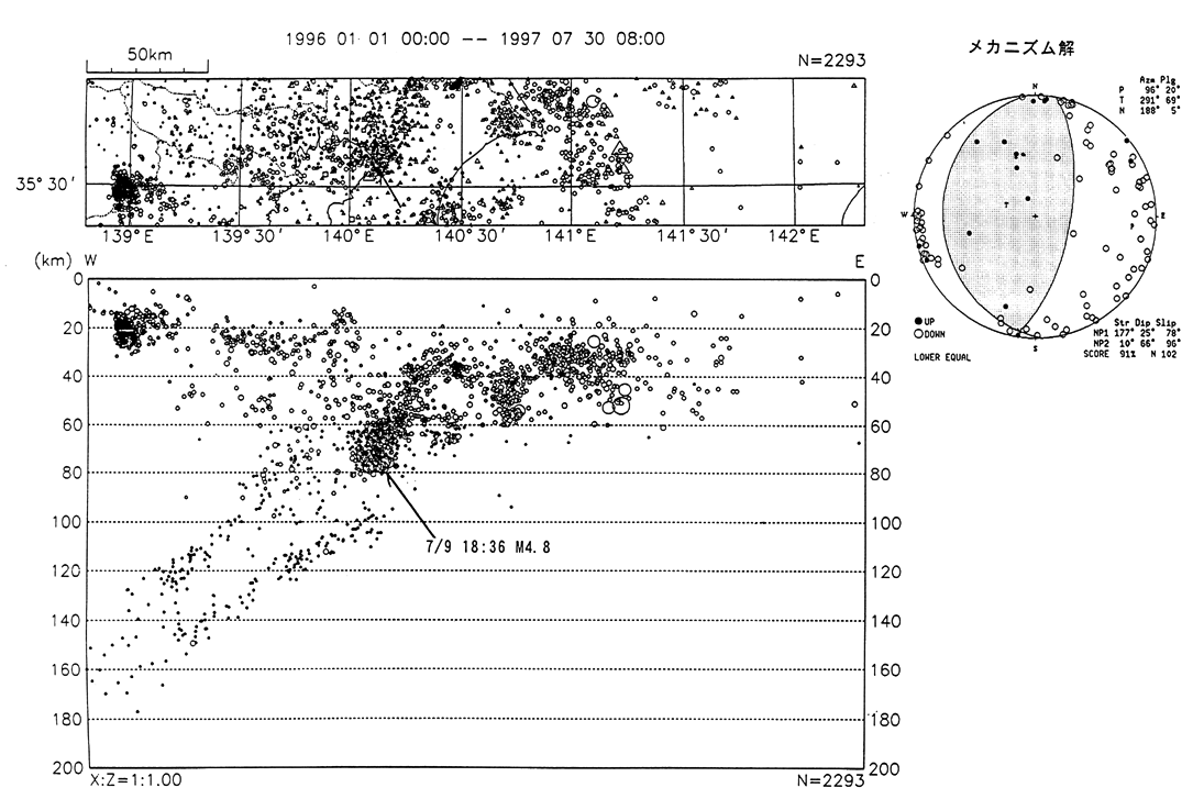 千葉県北西部の地震(1997/7/9 18h36m M4.8 H=77km)