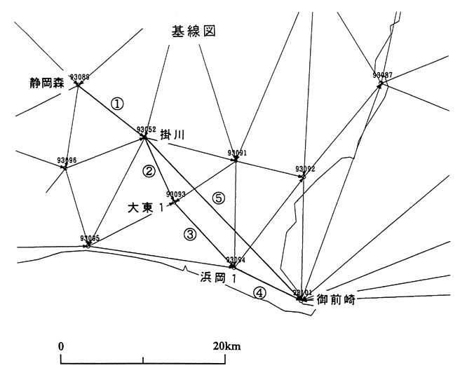 掛川・御前崎周辺の基線には、特筆すべき変化は見られない。