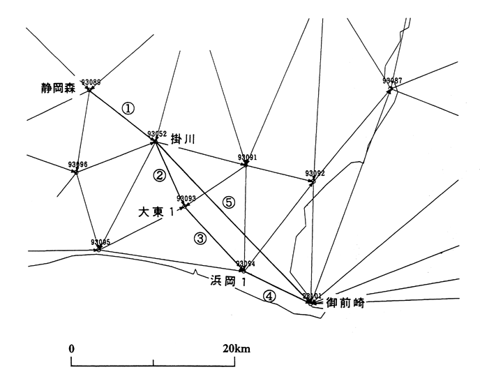 GPS連続観測基線図 掛川・御前崎周辺