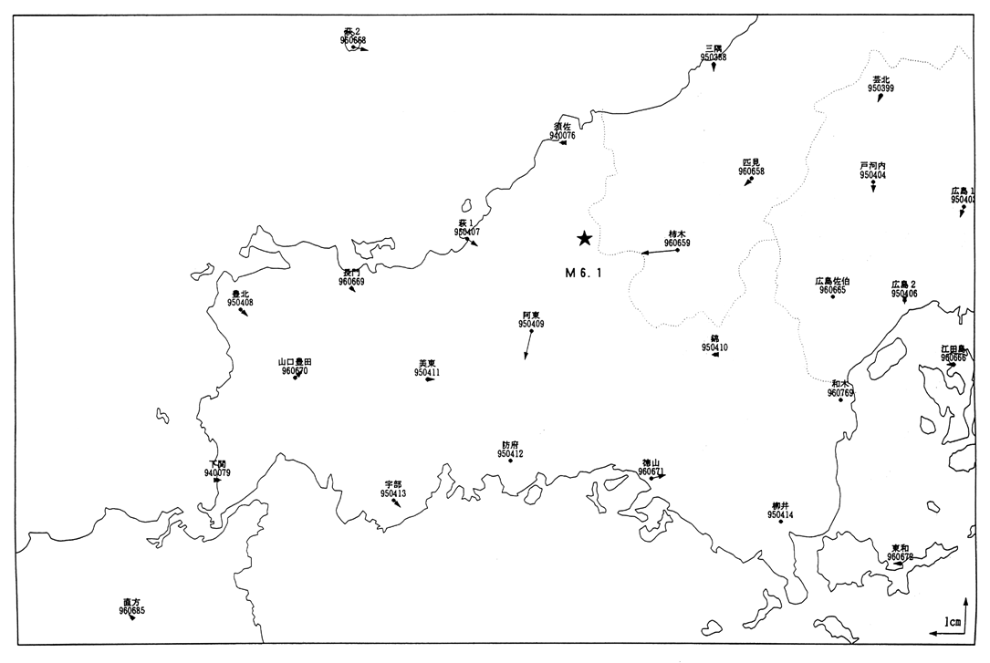 1997.6.25の地震に伴う地殻変動を含むベクトル