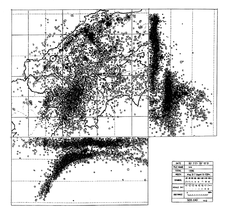1983年7月21日から1993年12月31日までの約10年間の地震分布