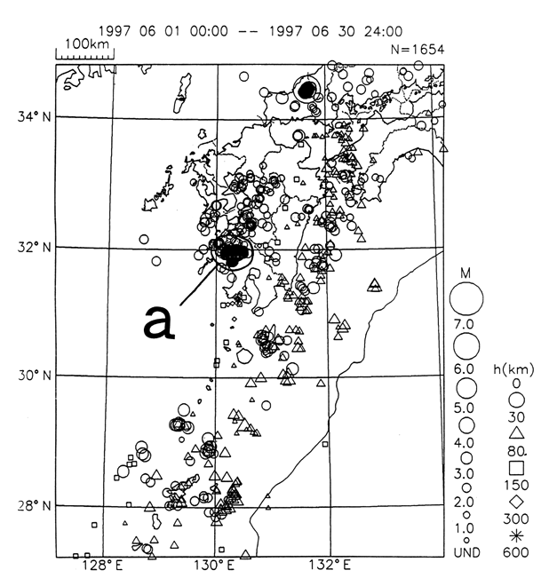 a)3/26M6.3と5/13M6.2の鹿児島県北西部の地震の余震活動は続いているが、地震回数は順調に減少しており、有感地震は1日に1回程度となっている。