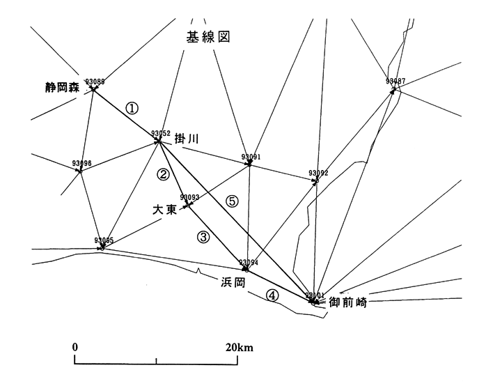 GPS連続観測基線図 掛川・御前崎周辺