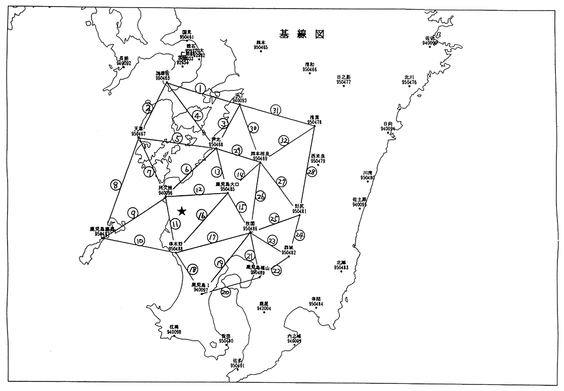 GPS連続観測基線図 鹿児島県薩摩地方