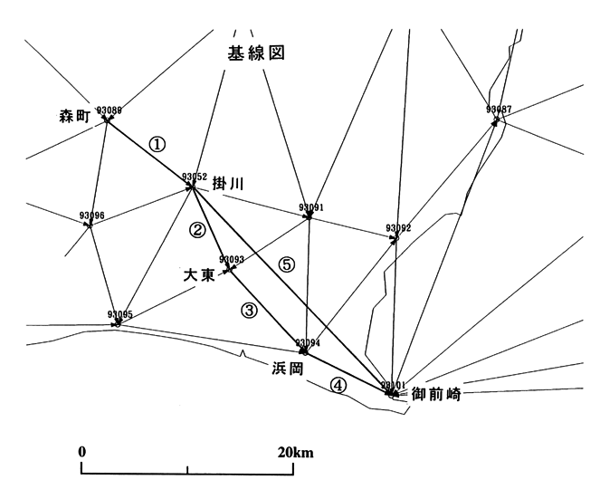 掛川・御前崎周辺の基線には、特筆すべき変化は見られない。
