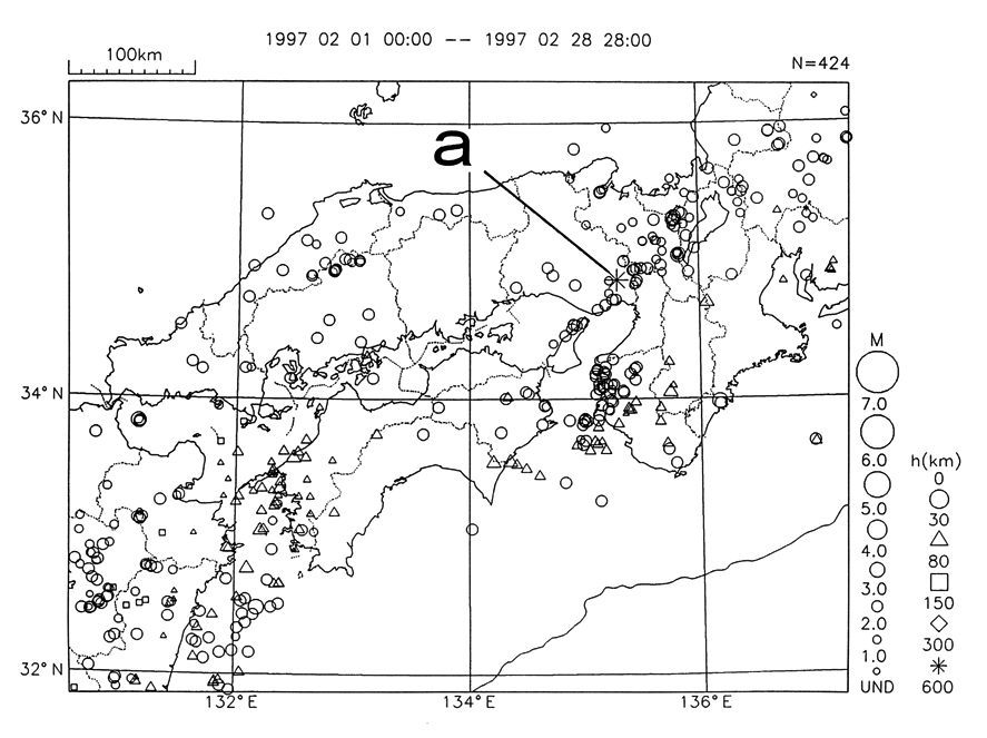 a)兵庫県で、2/10にM5.4の深発地震(深さ390km)が発生した。