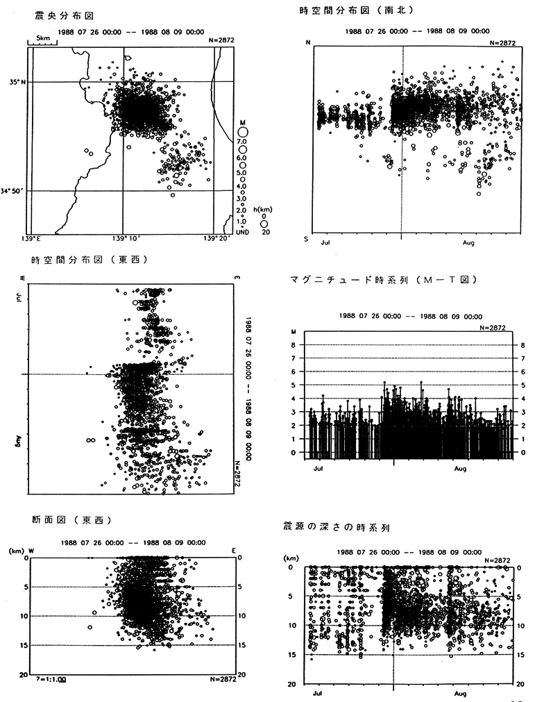 伊豆半島東方沖の地震活動(1988/7/26−1988/8/8)