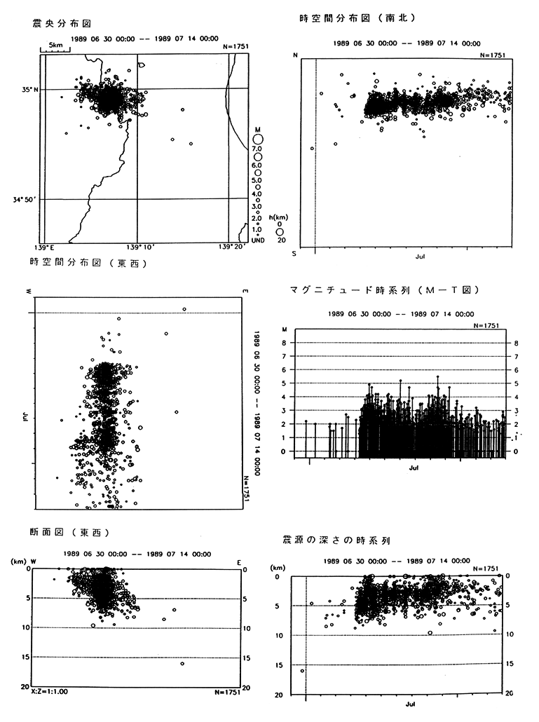 伊豆半島東方沖の地震活動(1989/6/30−1989/7/13)