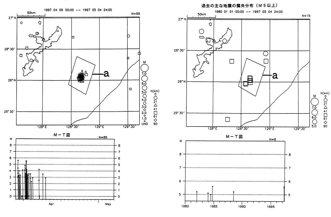 沖縄本島近海の地震活動(1997/4/9−1997/5/4)