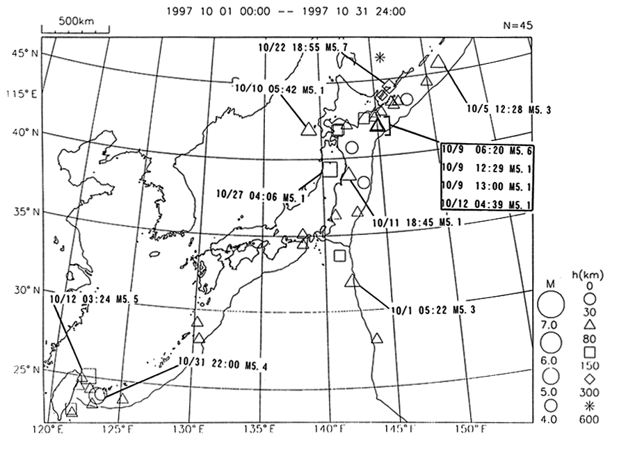 釧路沖でM5.6を最大とする地震活動があった。このほか海域ではウルップ島東方沖、国後島付近、北海道南西沖、宮城県沖、鳥島東方沖、石垣島近海でM5.0以上の地震が発生した。