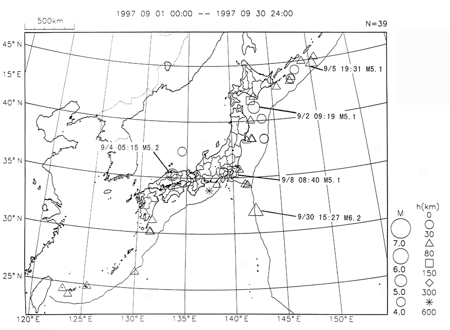 鳥島東方沖でM6.2の地震が発生したほか、M≧5.0の地震が、海域では千島列島と青森県東方沖、内陸では東京湾と鳥取県西部で発生した。