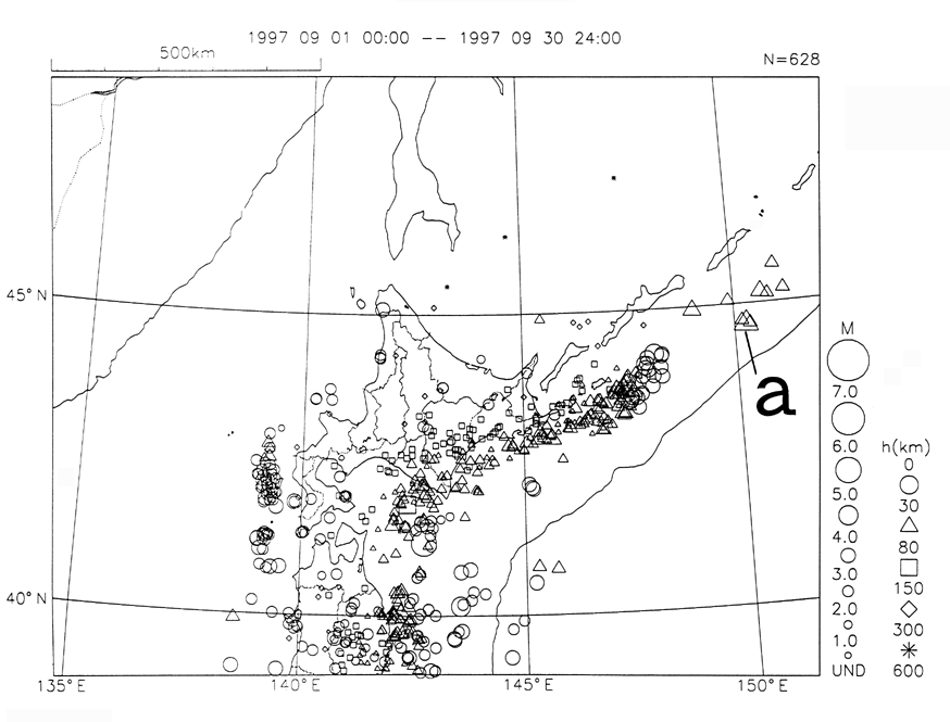 a)択捉島南東沖で9/5にM5.1の地震が発生した。
