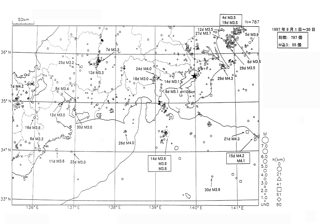 東京湾北部でM5.1の地震(深さ108km)が8日に発生した。山梨県東部で24日にM4.0の地震が発生し、M3クラスの地震が14日と18日に発生している。新島においても14日にM3.8の地震が2個発生している。また、熊野灘で11日にM3.6、23日にM3.0の地震が発生した。26日には御前崎沖でM4.0の地震が発生している。