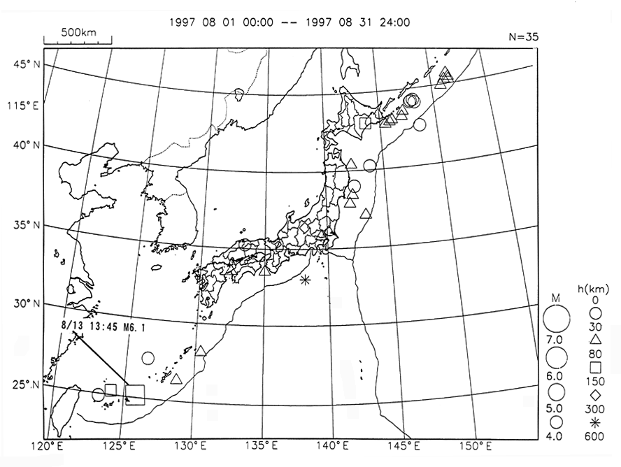 M≧5.0の地震としては、宮古島近海でM6.1の地震だけであった。
