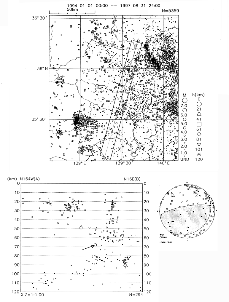 埼玉県南部の地震(1997/8/9 05h34m M=4.7 H=67km)