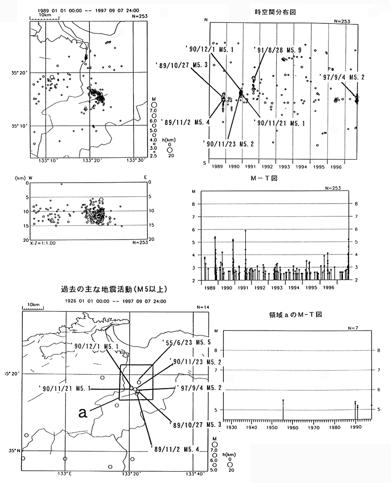 鳥取県西部の地震活動 M2.5以上の地震活動(1989/1/1−1997/9/7)
