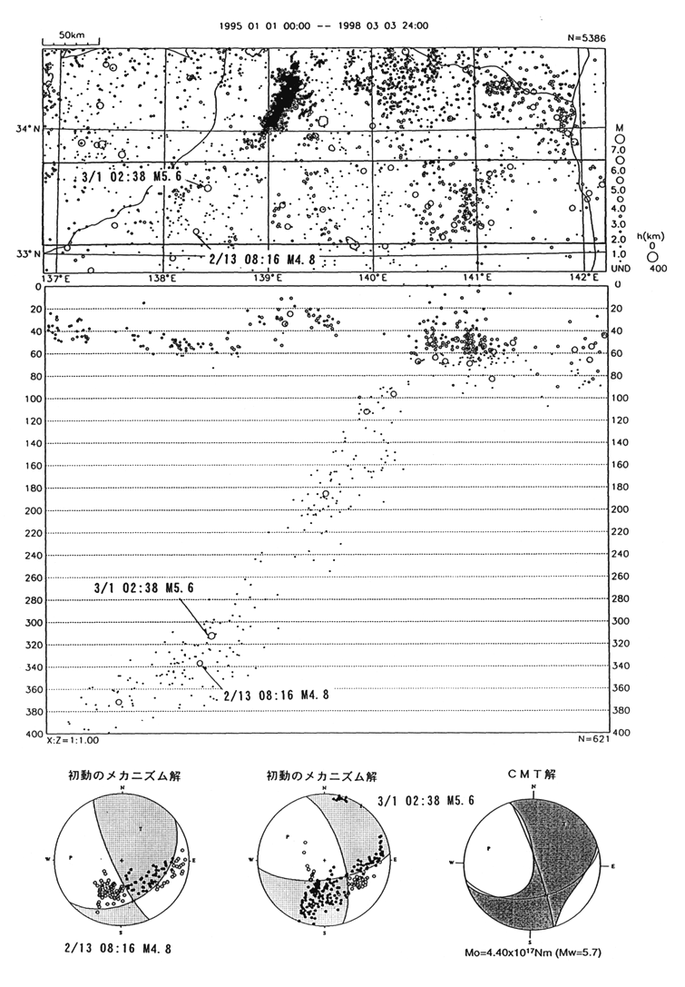 東海道沖の地震活動(1998/3/1 02h38m M5.6 h=312km)