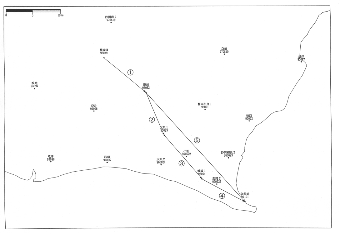 掛川・御前崎周辺の基線には特段の変化は見られない。