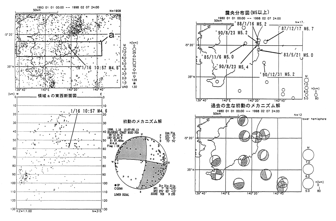 千葉県南部の地震(1998/1/16 10h57m M=4.6 57km)