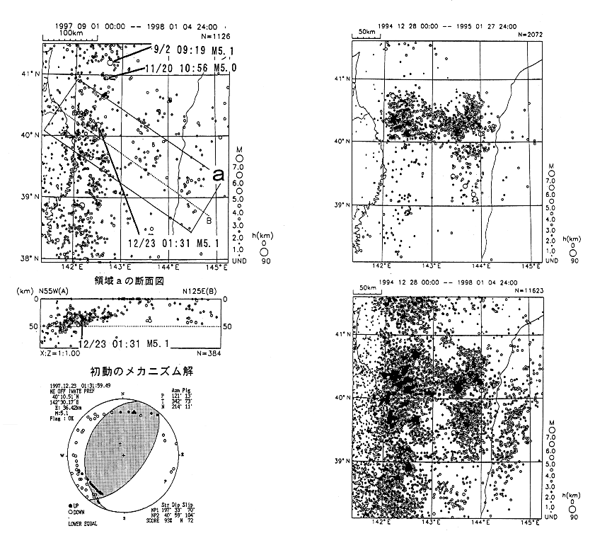 12/23 M5.1の地震は逆断層型で、1994/10の三陸はるか沖地震M7.5の余震域内に位置している。
