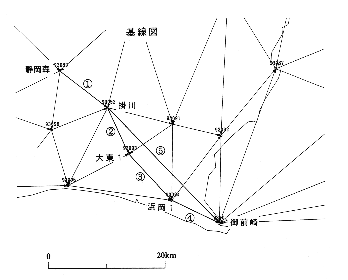 GPS連続観測基線図 掛川・御前崎周辺