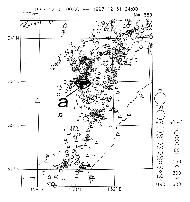 a)鹿児島県北西部の一連の地震(3/26 M6.5、5/13 M6.3)の余震活動は減衰している。余震域の南側延長部で、12/25 M3.9の地震[最大震度3]が発生するなど、中旬以降活動がやや活発化しており、1/10にはM4.1の地震[最大震度4]が発生した。