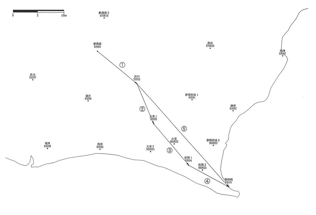 GPS連続観測基線図 掛川・御前崎周辺