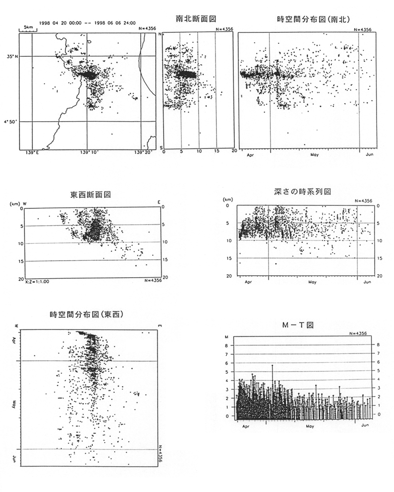 伊豆半島東方沖の地震活動(1998/4/20−1998/6/6)(再決定震源)