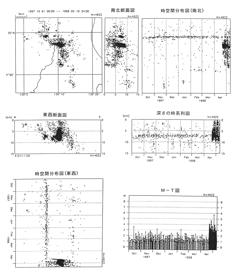 伊豆半島東方沖の地震活動(1997/10/1−1998/5/10)(再決定震源)