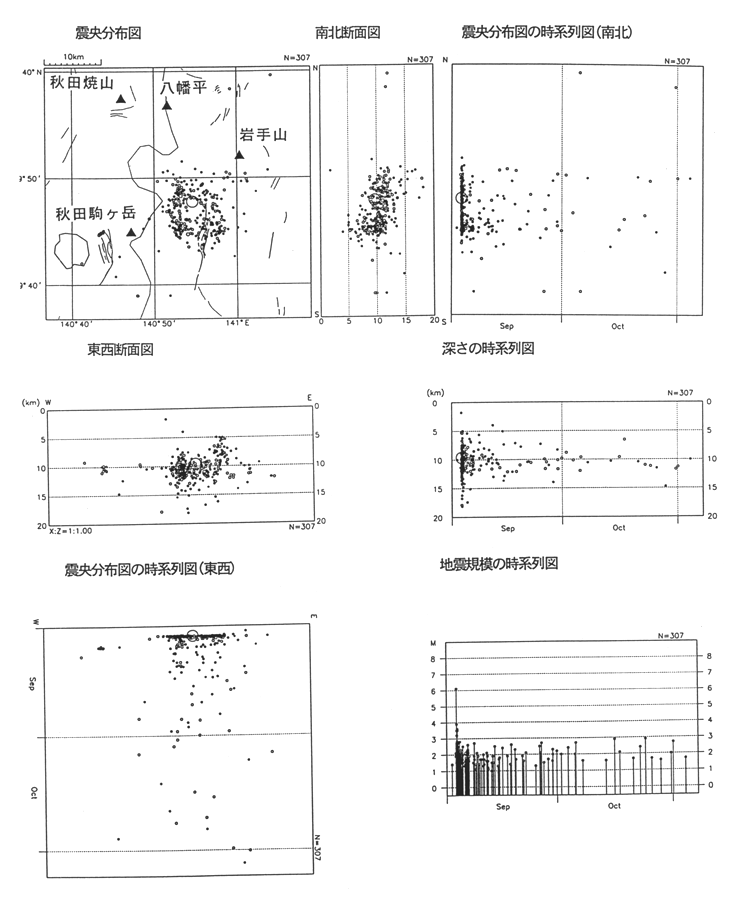 Seismic activity inland in northern Iwate Pref. (1 Sep 0hrs to 7 Nov 0hrs, 1998)Routine processing results