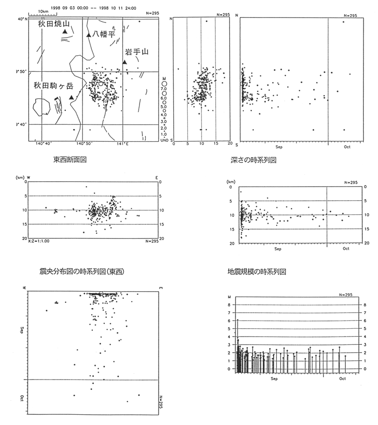 岩手県内陸北部の地震活動(1998年9月3日0時〜10月11日24時0分)ルーチン処理結果