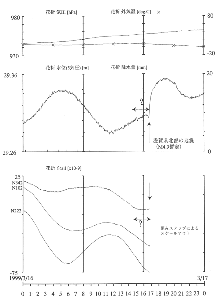 花折観測井 (大津市)(2分値)(1999/03/16 00:00−1999/03/17 00:00)