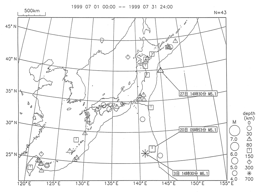 An M5.1 earthquake occurred on the eastern side of the trench axis offshore of the Sanriku (Aomori-Iwate-Miyagi) area. An M6.1 deep-focus earthquake occurred in the sea near Chichijima Island. Also, an M5.1 earthquake occurred in the sea near Chichijima Island.
