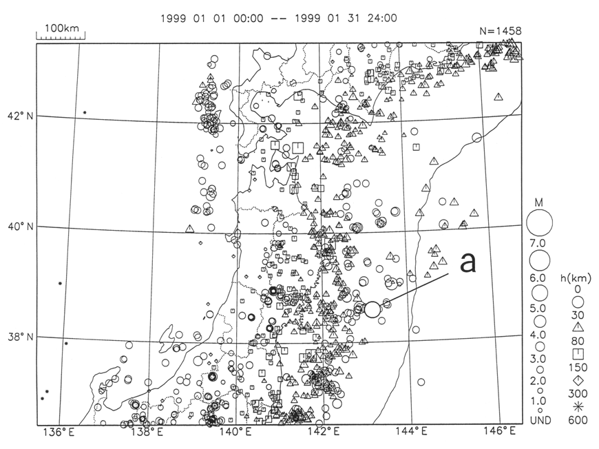 a) An M5.5 earthquake occurred on 22 Jan. off the coast of Miyagi Pref.
