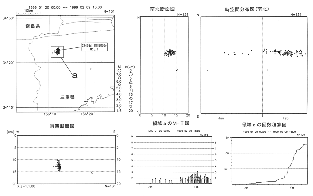 Seismic activity in central Mie Pref. (M1.6 and greater)