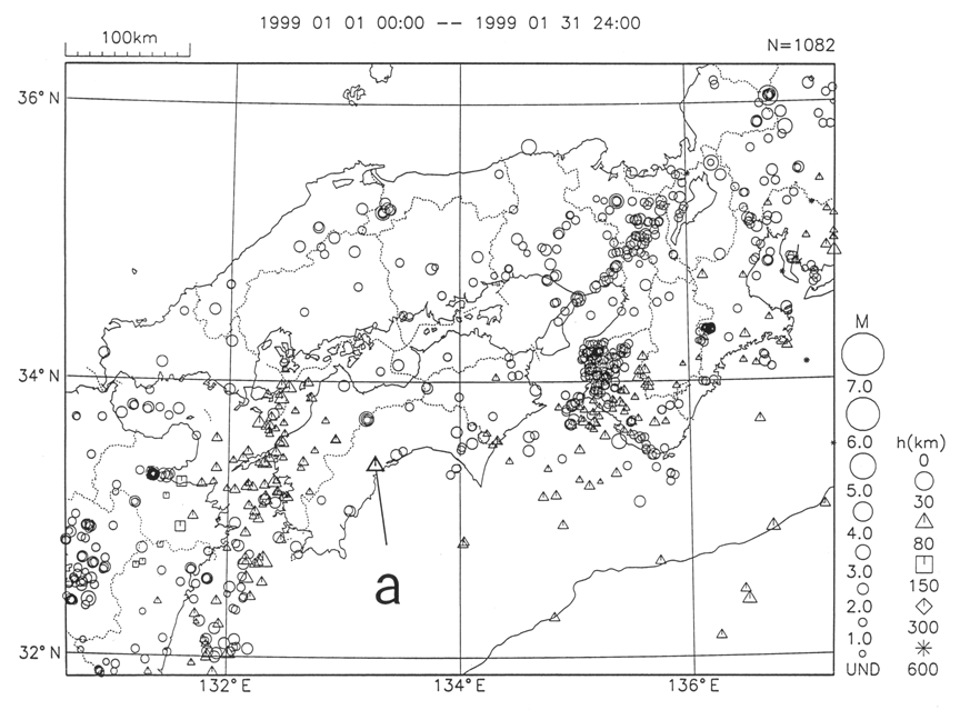 a) An M4.0 earthquake occurred on 4 Jan. in central Kochi Pref.