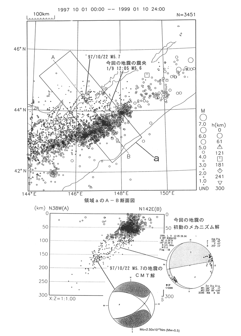 Earthquake in the vicinity of Iturup Island (9 Jan 1999, 12h05m, M5.6, h=121km)